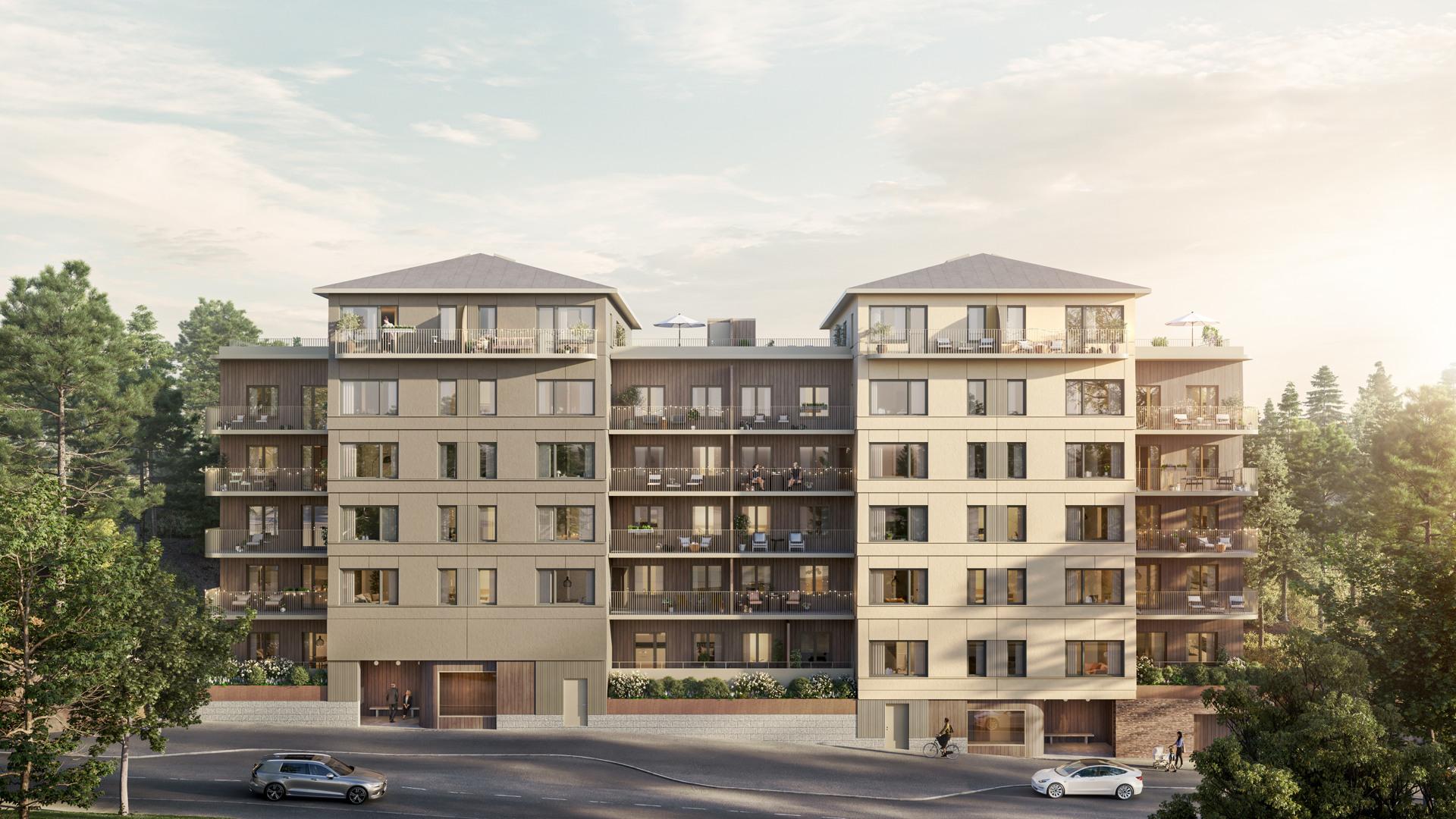 Interiören är inspirerad av naturen med ljusa väggar i varm grå/beige ton, mörkt ek-kök och askparkett. Hela bostaden har golvvärme, vilket ger hög komfort, ett stilrent uttryck och god möbleringsfrihet. Uppvärmning sker via energieffektiv bergvärme för ett hållbart och ekonomiskt boende.