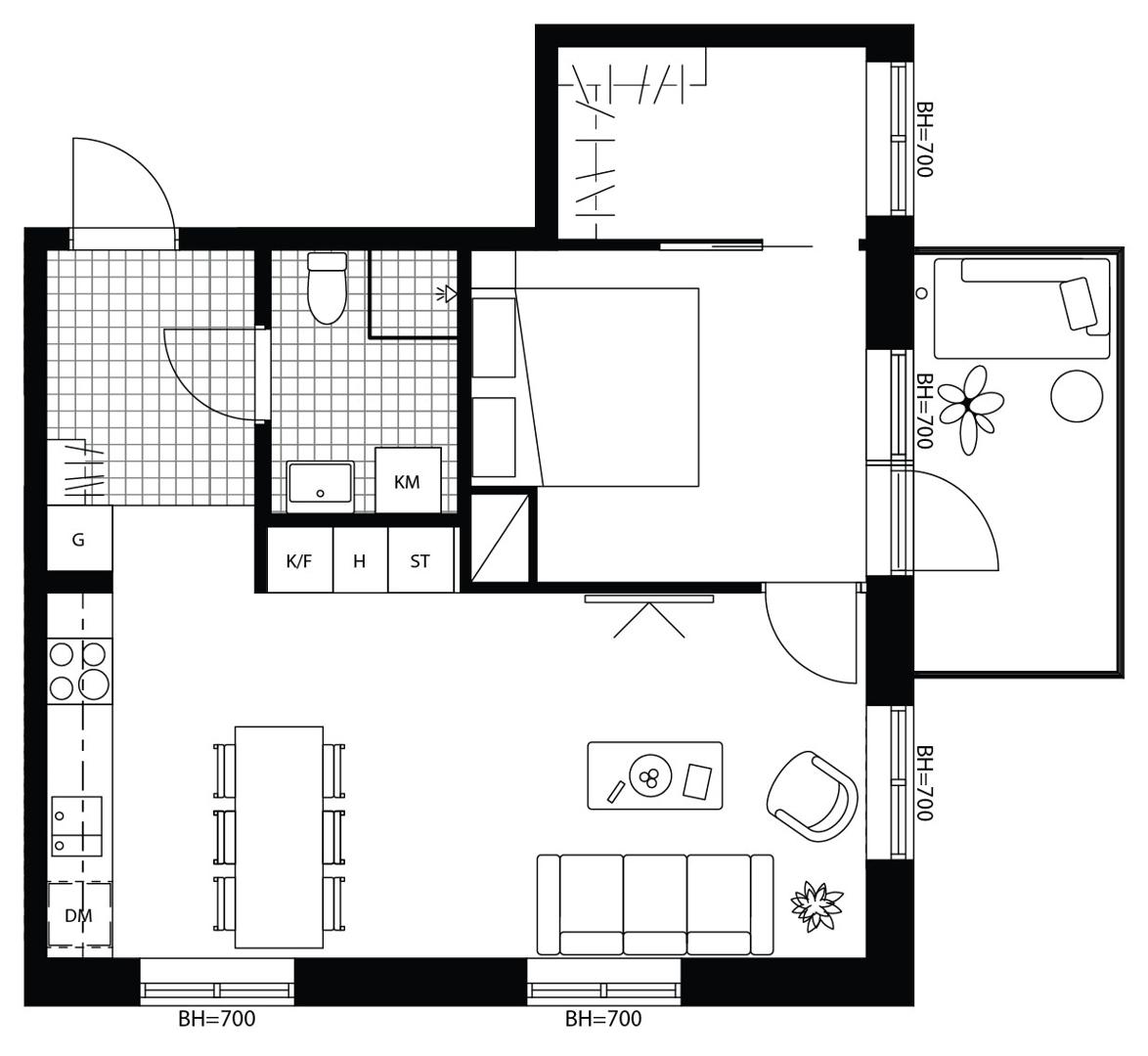Generös tvåa högt upp i huset. Kök och vardagsrum med öppen planlösning och fönster i två väderstreck. Balkong. Sovrum i anslutning till generös klädkammare med stort fönster vilket möjliggör flera användningsområden.