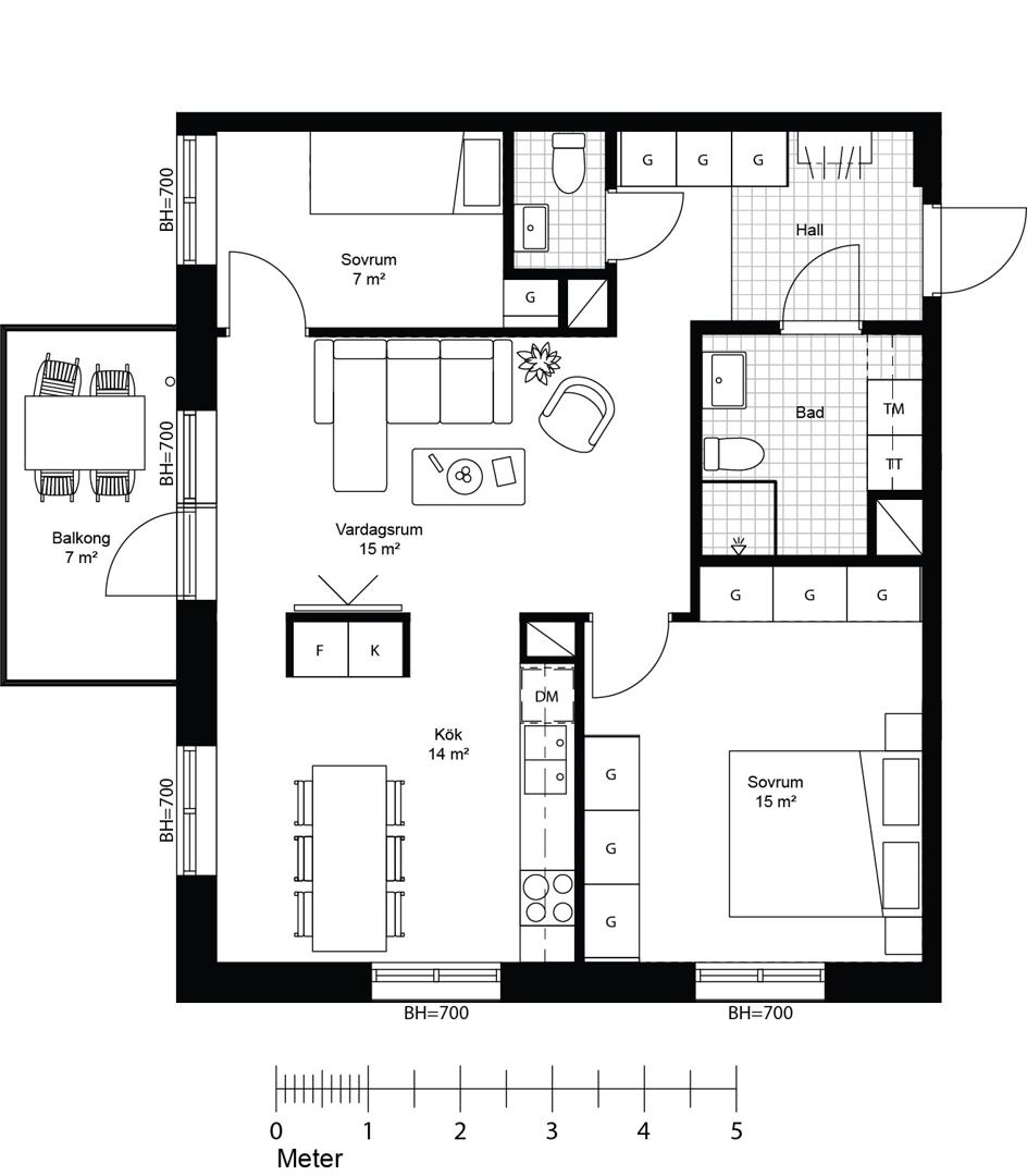 Här bor du med fönster i två väderstreck och balkong i västerläge mot den gemensamma, grönskande gårdsmiljön. Lägenheten har ett separat kök med matplats, vardagsrum med utgång till balkong och två sovrum varav det större har gott om garderober. Förutom badrum utrustat med tvättmaskin och tumlare finns en separat wc.