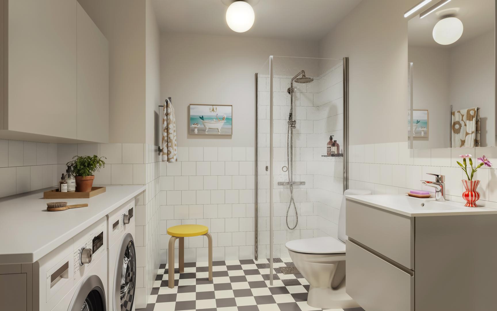 Visa merBadrum och wc är moderna, stilfullt utformade och planerade för att förenkla vardagen. Helheten är ett hem där varenda kvadratmeter är genomtänkt och där du får både stil, funktion och en varm atmosfär — ett hem där du verkligen vill bo!