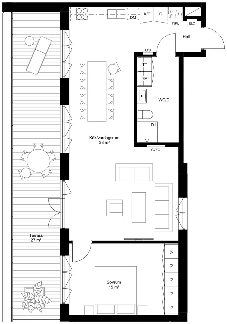 Öppen planlösning med terrass om 27 kvm i västerläge!