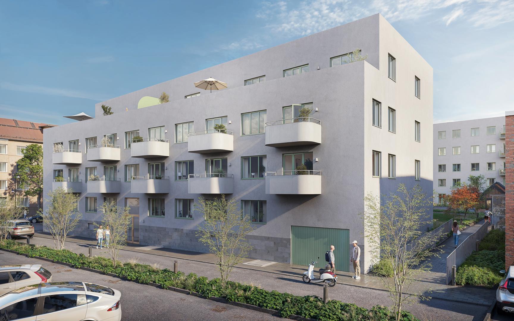 Bostäderna i Ture allé präglas av en harmonisk mix av ljusa färger och naturnära material. Samtliga väggar målas i en ljus och varm, gråbeige nyans och på golvet ligger en vitpigmenterad ekparkett.