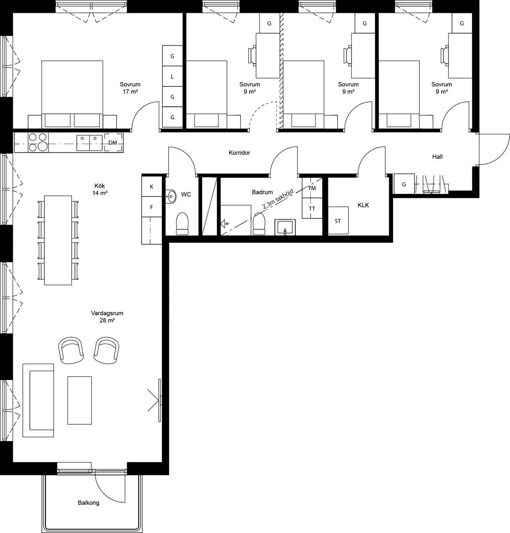 Femma med unik genomgående takhöjd om tre meter!