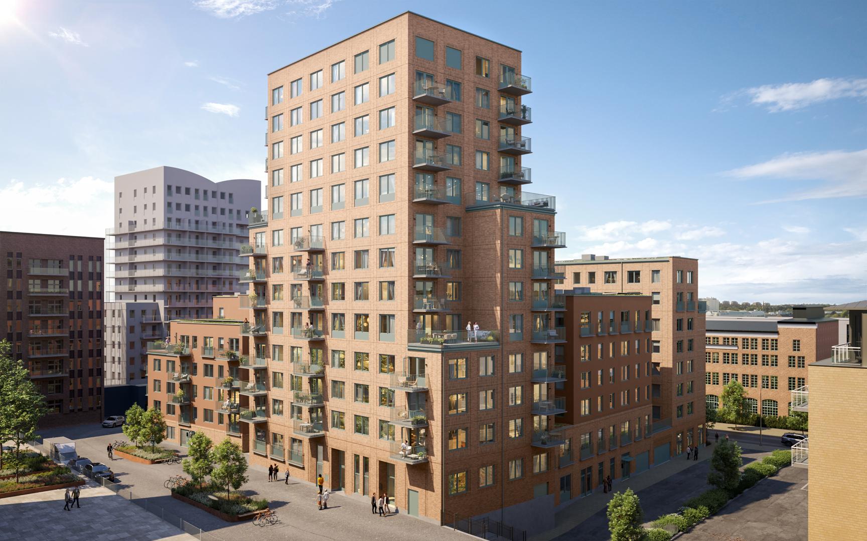 Bostäderna i Viridum präglas av en harmonisk mix av ljusa färger och naturnära material. Samtliga väggar målas i en ljus och varm, gråbeige nyans. Rumsgolven får en svagt vitpigmenterad ekparkett och hallen får samma sandstensmönstrade granitkeramik som våtrummen.