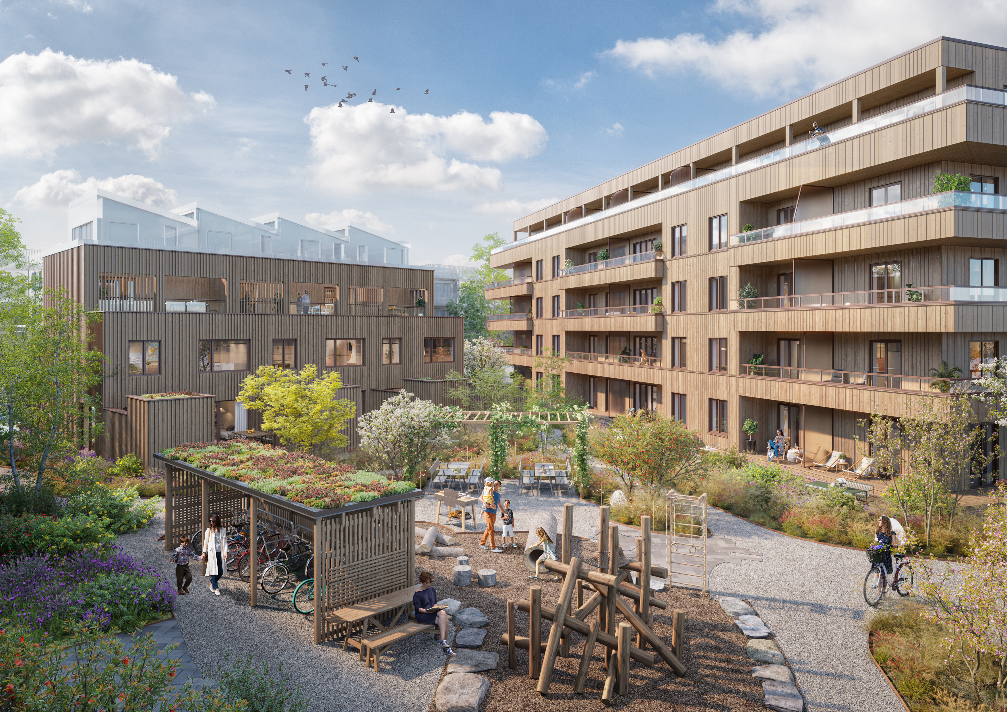 I kvarteret Wendelstrand planerar vi både för moderna flerbostadshus och charmiga radhus. Alla bostäder får smarta planlösningar, generösa fönsterpartier och hållbara material som står sig vackra över tid. Oavsett om du drömmer om en rymlig lägenhet eller ett eget radhus finns här ett hem som kombinerar funktion, stil och långsiktig kvalitet.