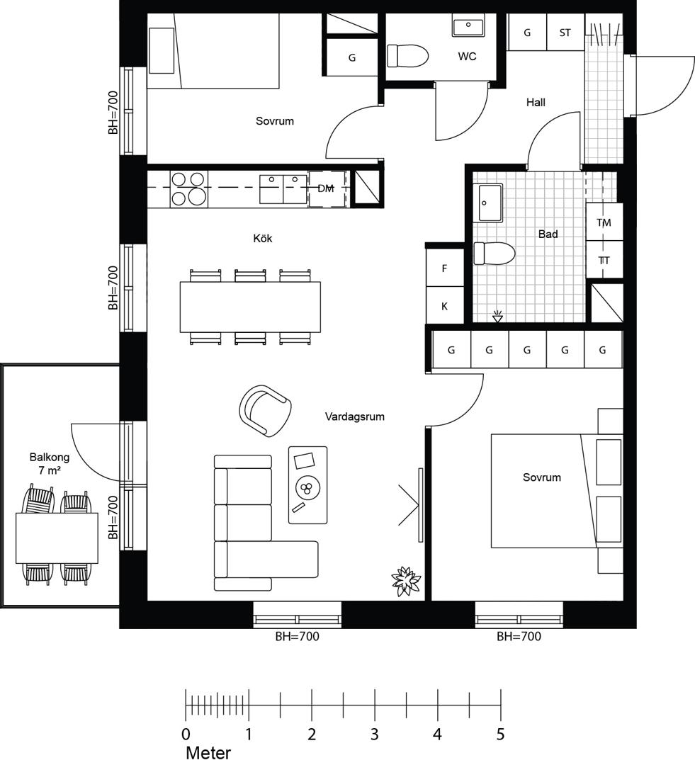 Välplanerad trea med balkong i fritt sydvästläge samt kök och vardagsrum i öppen planlösning. Två sovrum varav det större har gott om garderober. Förutom badrum utrustat med tvättmaskin och tumlare finns en separat wc.
