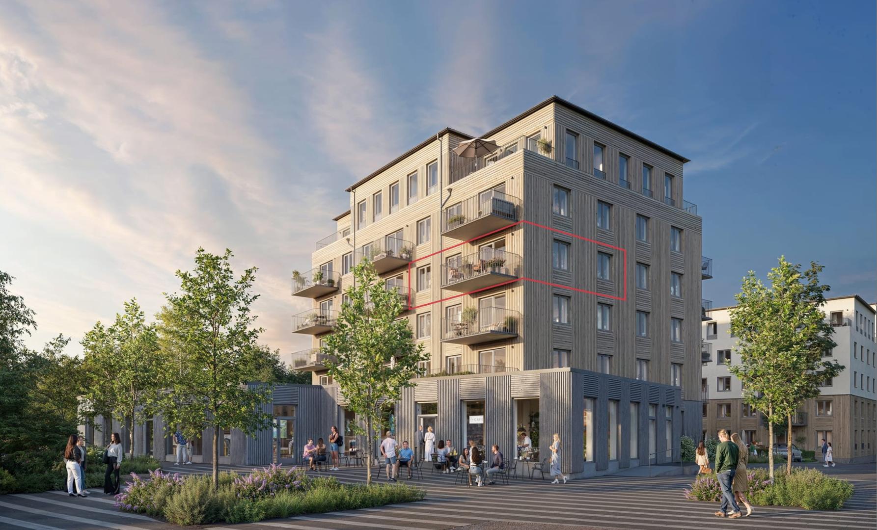 Trea med fritt läge och balkong i sydväst