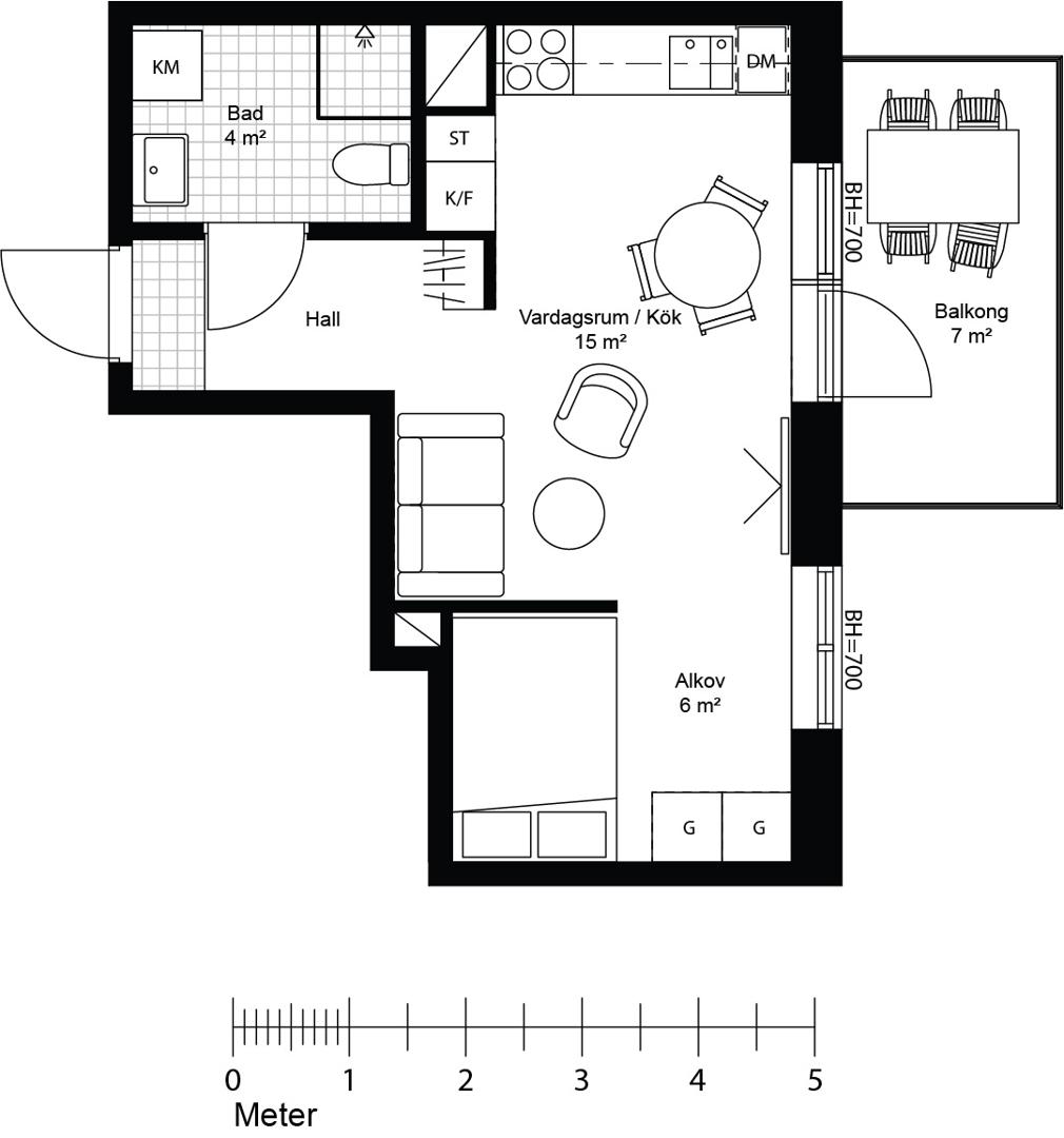 Smart planerad etta med sovalkov