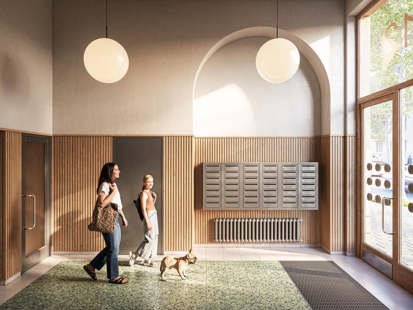 Bostäderna i Ture allé präglas av en harmonisk mix av ljusa färger och naturnära material. Samtliga väggar målas i en ljus och varm, gråbeige nyans och på golvet ligger en vitpigmenterad ekparkett.