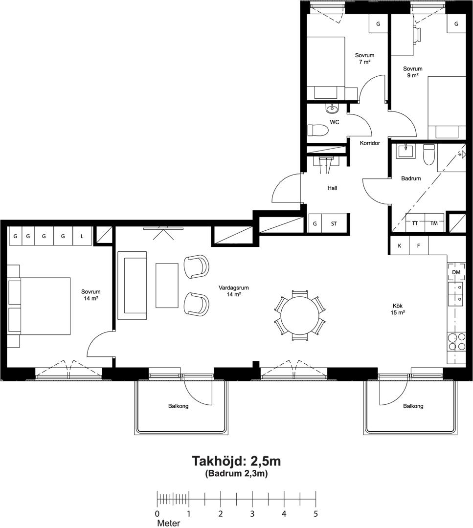Välplanerad fyra med dubbla WC, socialt kök i öppen planlösning mot vardagsrum samt två stycken balkonger i västerläge.