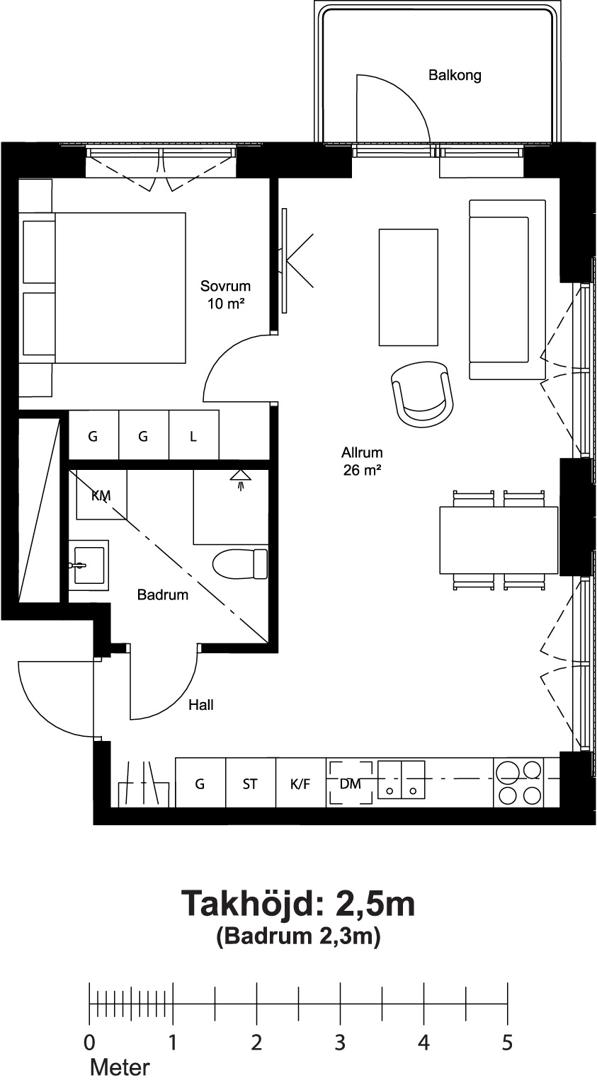 Högt upp i huset ligger denna ljusa gavellägenhet. Öppen planlösning mellan kök och vardagsrum samt balkong. Rymligt badrum med kombimaskin.